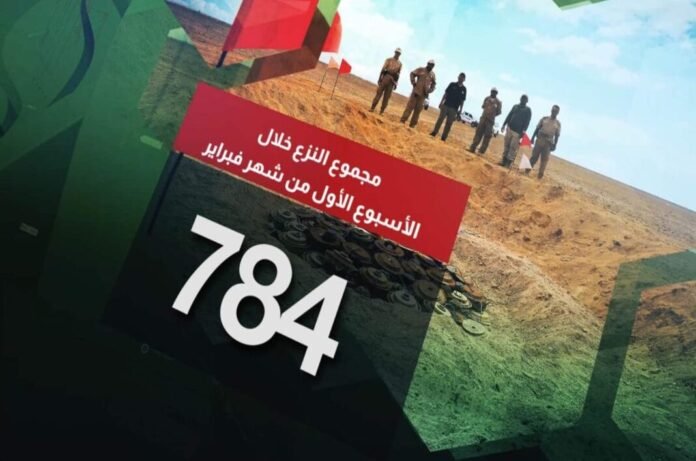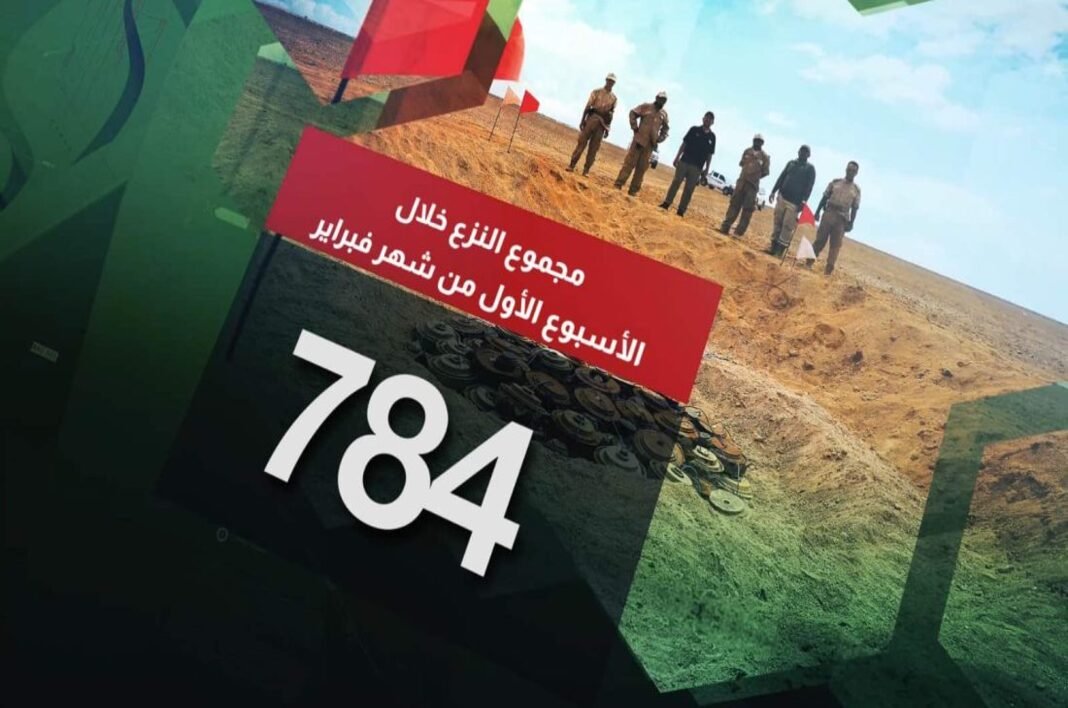 أعلنت غرفة عمليات مشروع مسام أن الفرق الميدانية نزعت خلال الأسبوع الماضي 784 لغماً وذخيرة غير منفجرة وعبوة ناسفة.