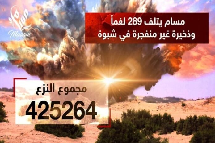 أعلن مدير عام مشروع مسام الأستاذ أسامة القصيبي أن الفرق الميدانية نزعت منذ انطلاقة المشروع وحتى 15 ديسمبر الجاري 425.264 لغماً و ذخيرة غير منفجرة وعبوة ناسفة.