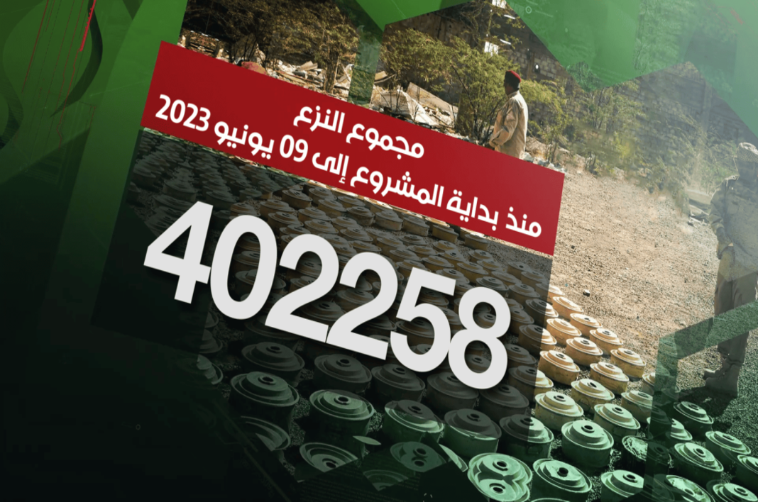 أعلن مدير عام مشروع مسام الأستاذ أسامة القصيبي أن الفرق الميدانية نزعت منذ انطلاقة المشروع وحتى يوم 09 يونيو الجاري 402.258 لغماً وذخيرة غير منفجرة وعبوة ناسفة.