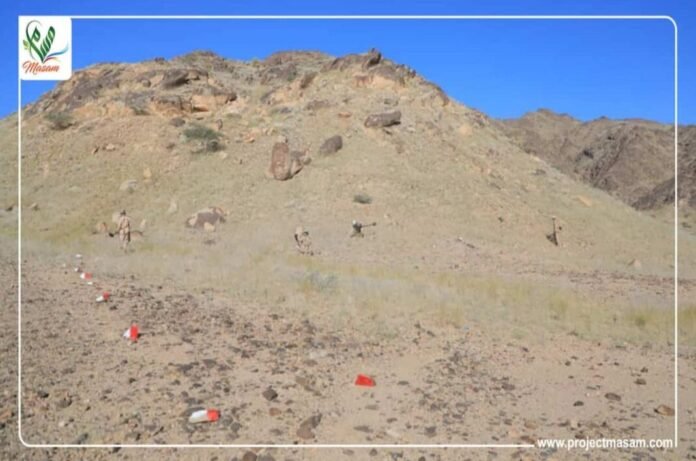 وقال إن الحقول التي تمكن فريقه من تأمينها تقع في مناطق الحشفاء، منطقة الهيشة، منطقة أم ريشة، وغيرها، مؤكداً بأن الفريق انتزع أكثر من 430 لغم وعبوة ناسفة من تلك الحقول.