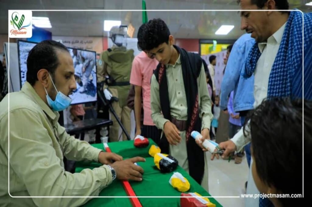 ويتضمن جناح مسام معرض صور لضحايا الألغام ومجسمات لنماذج من الألغام والعبوات الناسفة بهدف توعية الزائرين للمعرض بأنواع الألغام وطرق تجنبها وعدم العبث بها.