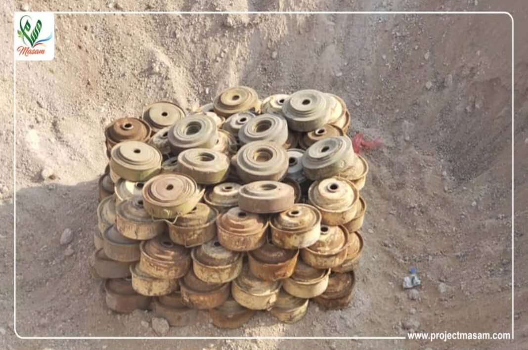 نفذ مشروع مسام لتطهير الأراضي اليمنية من الألغام عملية إتلاف وتفجير لـ 1002 لغمًا وقذيفة غير منفجرة وعبوة ناسفة في مديرية ذباب بباب المندب.