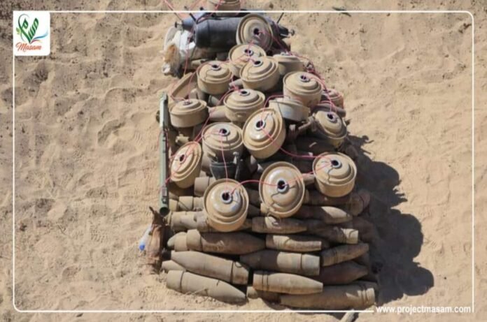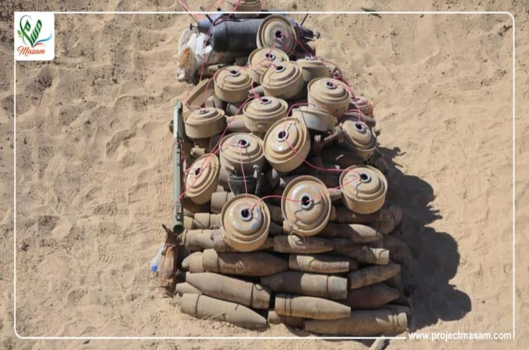 وأكد قائد فريق المسح التابع لمشروع مسام المهندس حسين العقيلي إتلاف وتفجير 622 لغماً وقذيفة غير منفجرة، شملت 600 قذيفة غير منفجرة، و20 لغماً مضاداً للدروع، ولغمين بحريين بمحافظة شبوة.