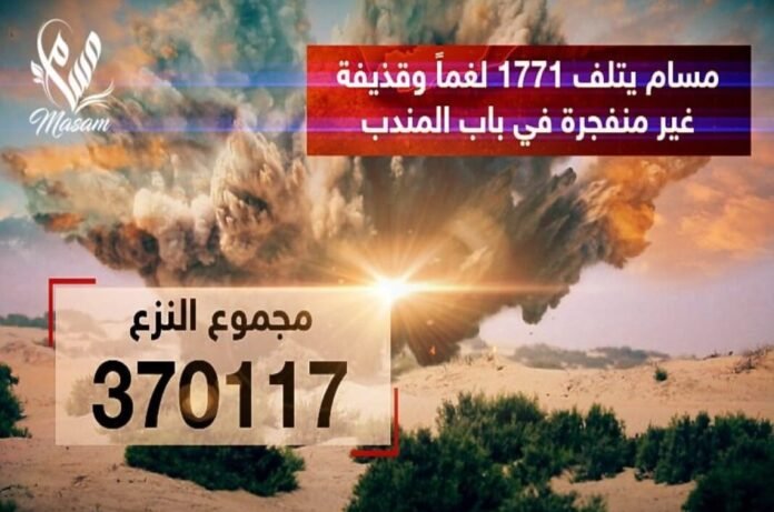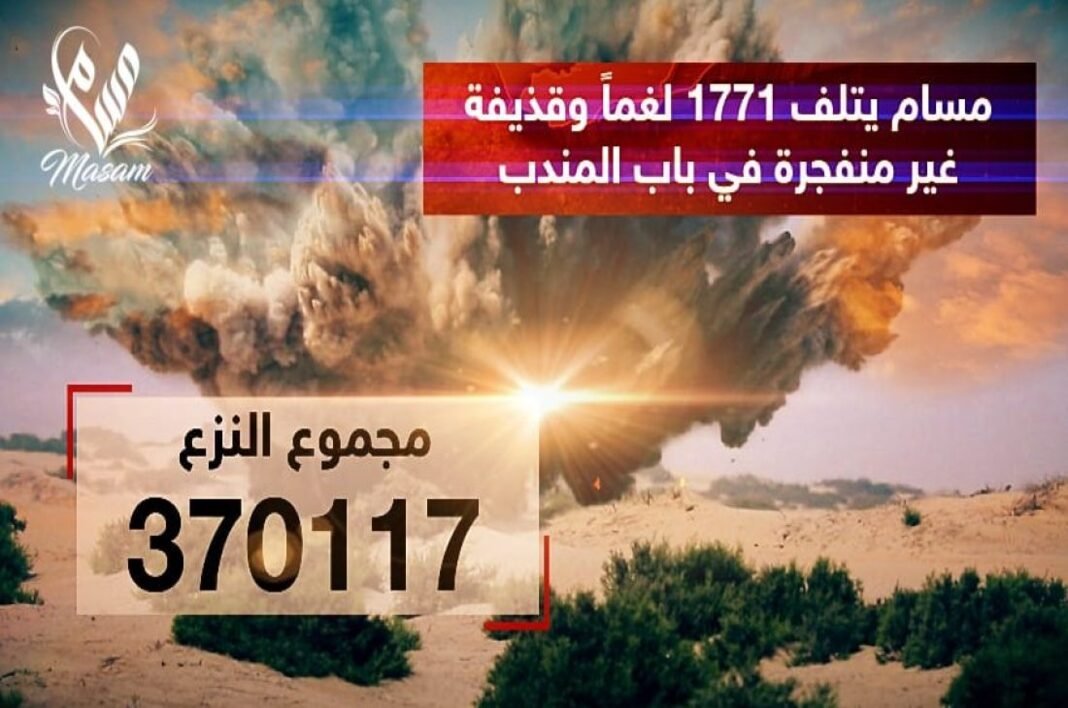أعلن مدير عام مشروع مسام الأستاذ أسامة القصيبي أن فرق المشروع نزعت منذ نهاية شهر يونيو 2018 وحتى يوم 28 أكتوبر الجاري 370.117 لغماً وذخيرة غير منفجرة وعبوة ناسفة.