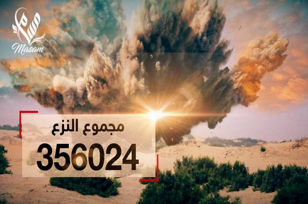 وقد بينت غرفة عمليات مسام أن فرق المشروع نزعت حتى الآن 211.884 ذخيرة غير منفجرة و7459 عبوة ناسفة و131.153 لغماً مضاداً للدبابات و5528 لغماً مضاداً للأفراد.