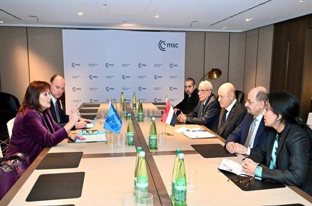 التقى العليمي في ميونيخ الممثل الأعلى للشؤون الخارجية والسياسة الأمنية بالاتحاد الأوروبي، كايا كالاس، وتطرق اللقاء إلى مسار الإصلاحات الشاملة والتدخلات الأوروبية والدولية المطلوبة لدعم الاقتصاد اليمني، وتعزيز موقف العملة الوطنية، وتخفيف المعاناة الإنسانية التي فاقمتها هجمات الحوثيين على منشآت تصدير النفط.