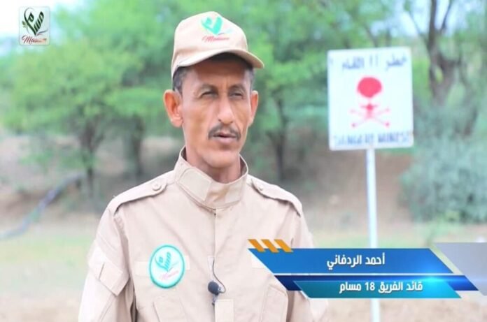 أفاد أحمد الردفاني، قائد الفريق 18 مسام أن فريقه يعمل على تطهير منطقة الدريهمي كليا من الألغام.