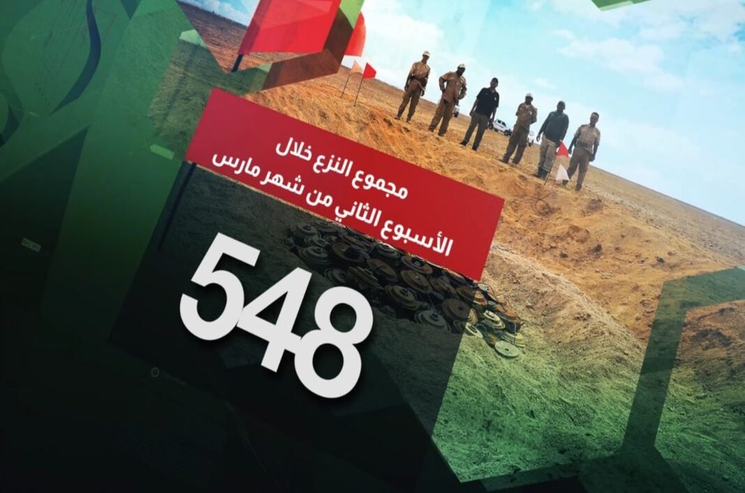 أعلنت غرفة عمليات مشروع “مسام” أن الفرق الهندسية التابعة للمشروع نجحت خلال الأسبوع الماضي في نزع 548 لغماً وذخيرة غير منفجرة وعبوة ناسفة، ليرتفع بذلك إجمالي ما تم نزعه منذ بداية شهر مارس إلى 1,606 ألغام وذخائر غير منفجرة.