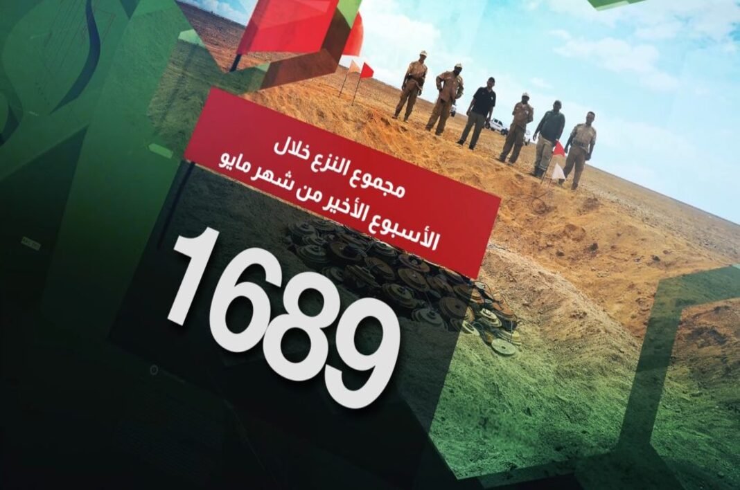 وقالت غرفة العمليات في بيان صحفي، تلقّت وسائل الإعلام نسخة منه، إن الفرق الهندسية نزعت خلال الفترة ذاتها 1632 ذخيرة غير منفجرة و50 لغماً مضاداً للدبابات، ليرتفع بذلك إجمالي ما تم نزعه خلال شهر مايو إلى 7400 لغم وذخيرة وعبوة ناسفة، من بينها 7199 ذخيرة غير منفجرة و182 لغماً مضاداً للدبابات.
