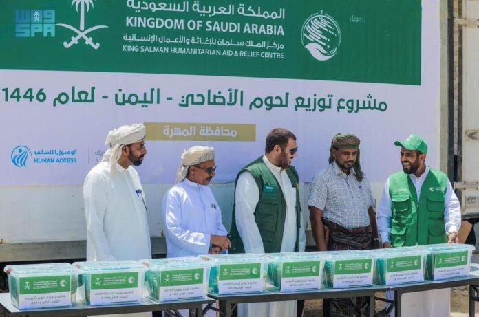 دشّن مركز الملك سلمان للإغاثة والأعمال الإنسانية اليوم، في مديرية الغيضة بمحافظة المهرة، مشروع توزيع لحوم أضاحي عيد الأضحى المبارك للعام 1446هـ، إذ سيتم بموجب المشروع توزيع (500) أضحية في المحافظة يستفيد منها (1,000) أسرة بواقع (7,000) فرد.