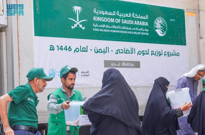 دشّن مركز الملك سلمان للإغاثة والأعمال الإنسانية مشروع توزيع الأضاحي لعام 1446هـ، في أربع محافظات يمنية ( عدن، وحضرموت، والمهرة، ومأرب)، بإجمالي ( 4180 ) أضحية، يستفيد منها أكثر من ( 58,500 ) فرد من الأسر الأشد احتياجًا.